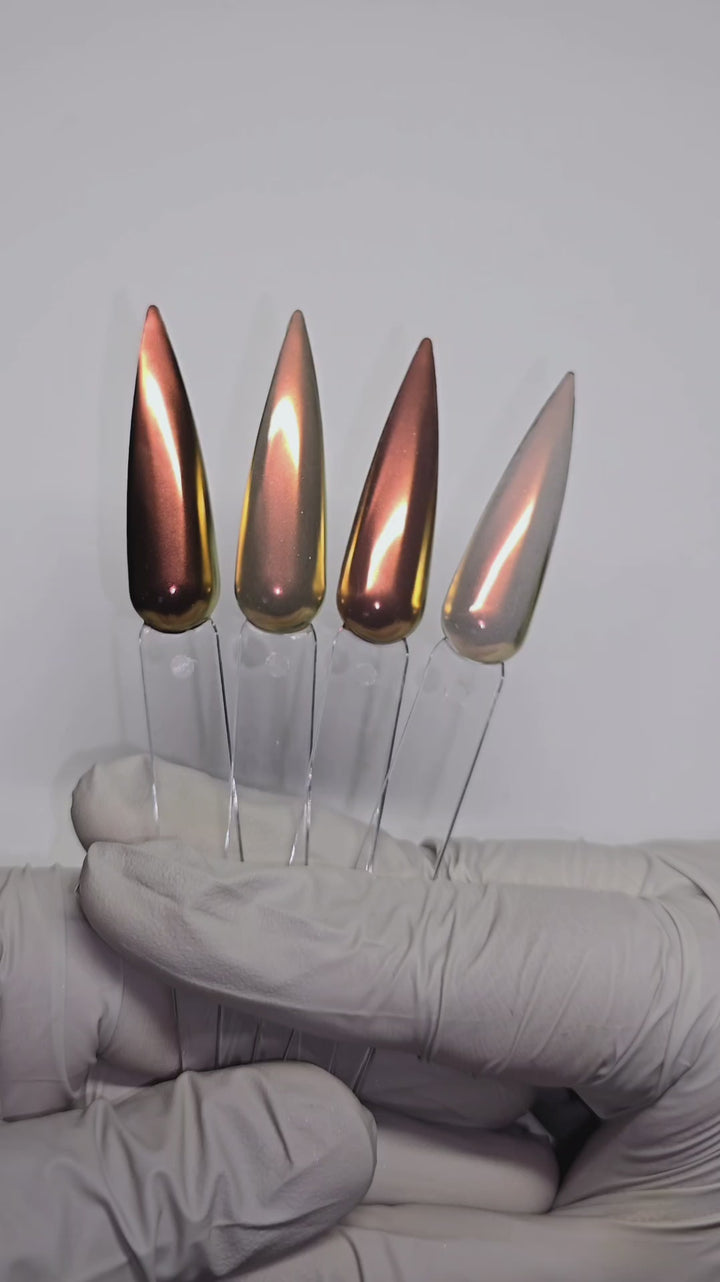 La photo de l'échantillon montre un chrome appliqué sur une base gel Serious Black. L'apparence peut varier selon les bases utilisées. Des vidéos d'échantillons seront bientôt disponibles.