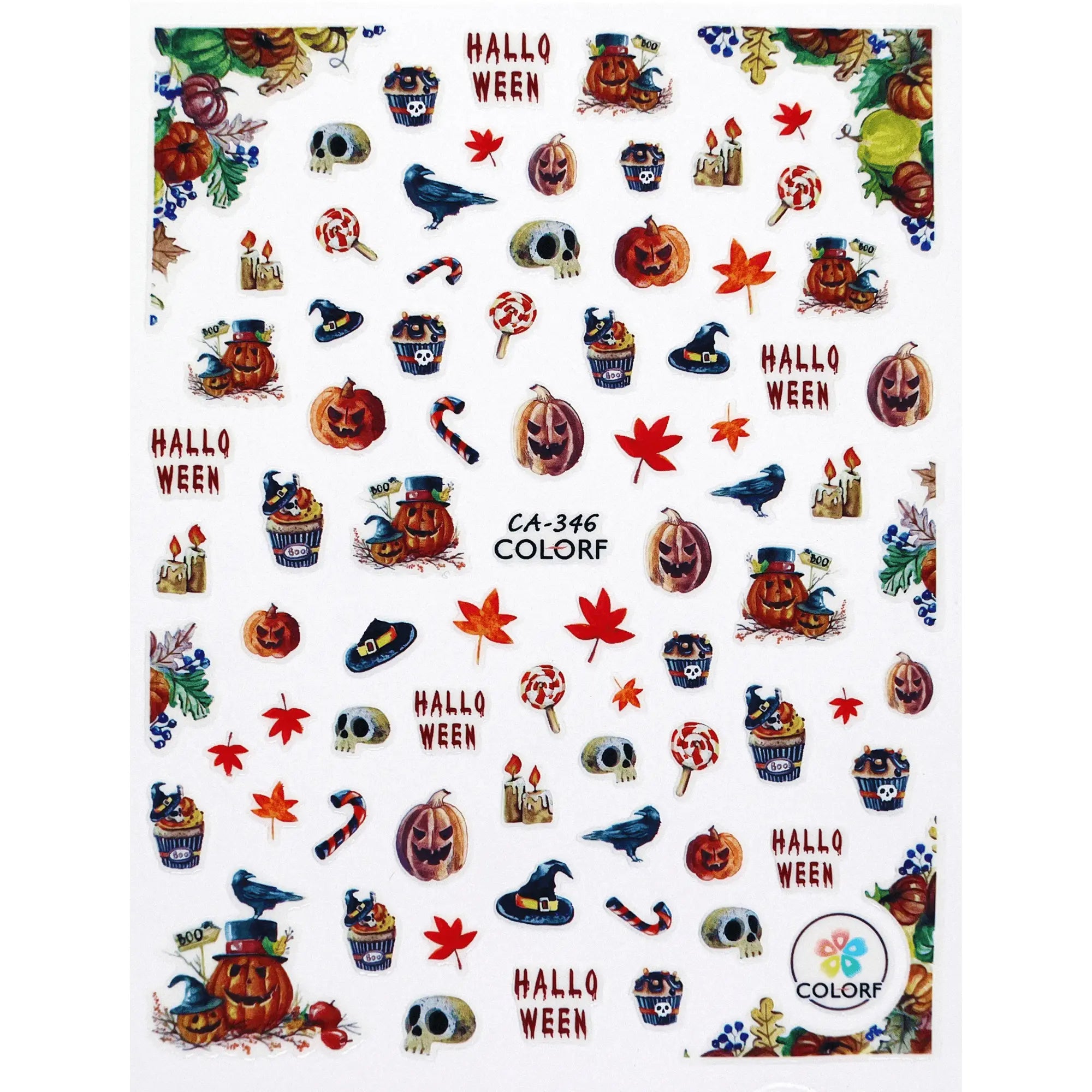 Halloween Stickers set, where the cosy vibes of autumn meet the spooky charm of Halloween. This set features an enchanting blend of autumn leaves and playful pumpkins, perfect for adding a touch of seasonal flair to your nail art. Each sticker is intricately designed and easy to apply, allowing you to create stunning nail designs with ease. Whether you're celebrating the beauty of fall or getting into the Halloween spirit, these stickers offer endless possibilities for creating captivating nail art. Embrace the magic of the season with our Autumn Leaves & Pumpkins Halloween Stickers and let your nails shine with festive charm