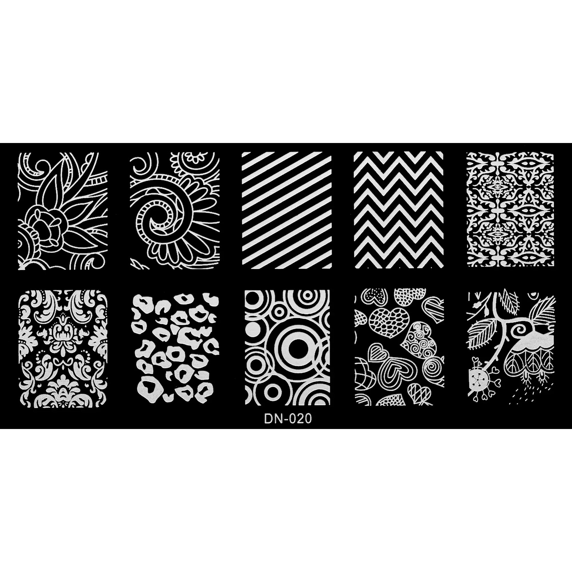 Stamping plate featuring various designs.