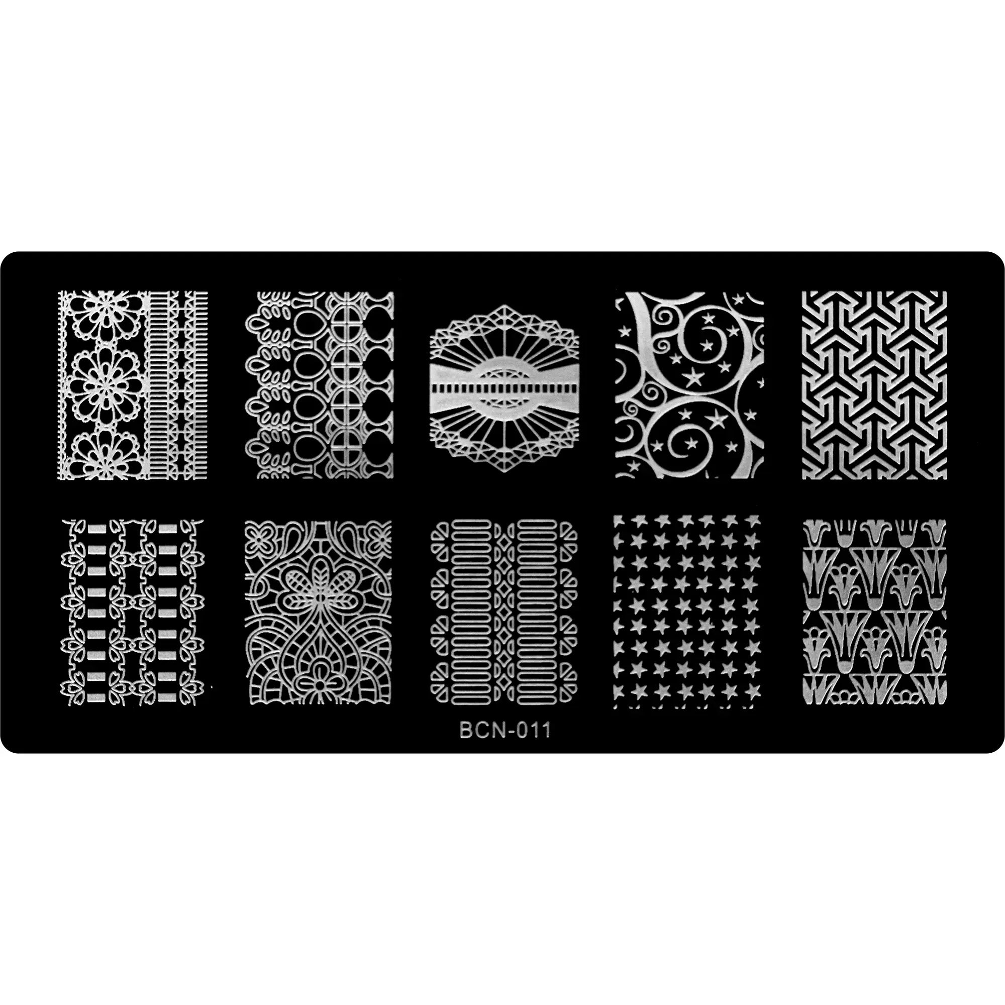 Stamping plate featuring various designs.