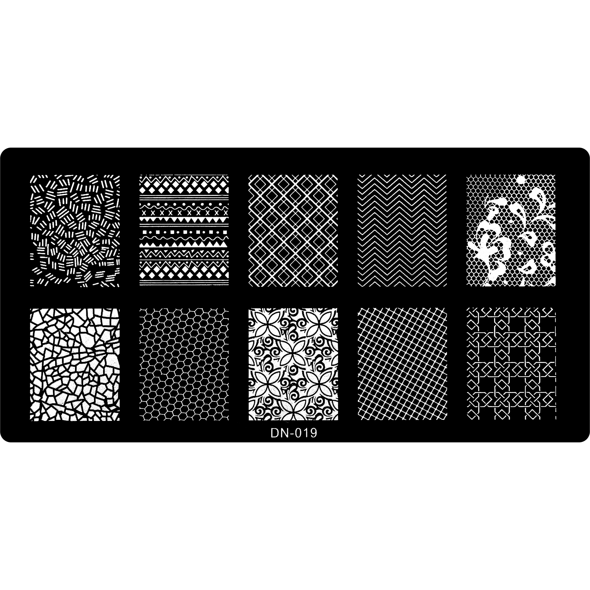 Stamping plate featuring various designs.