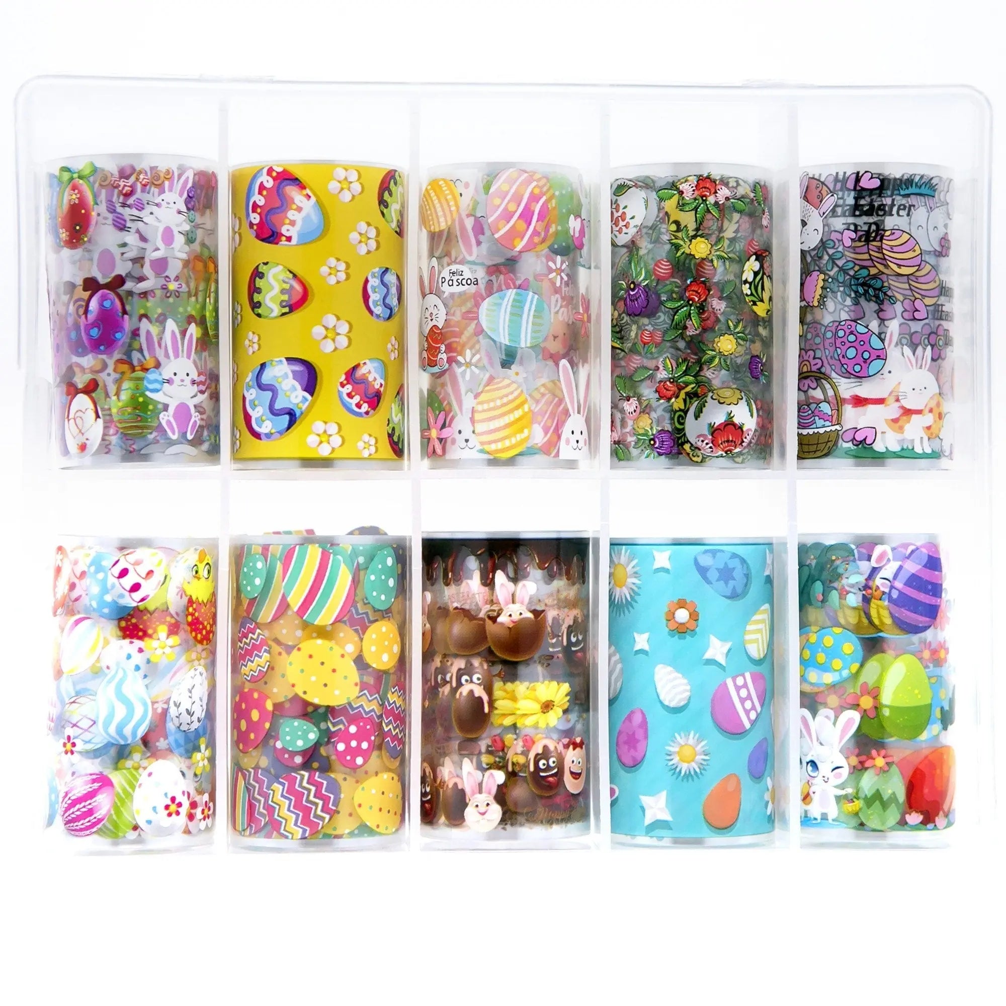 Ideal for those embracing the Easter spirit, this set features a delightful array of Easter-themed designs. From playful bunnies to colorful Easter eggs and cheerful spring motifs, these foils are perfect for creating festive and joyful nail art.