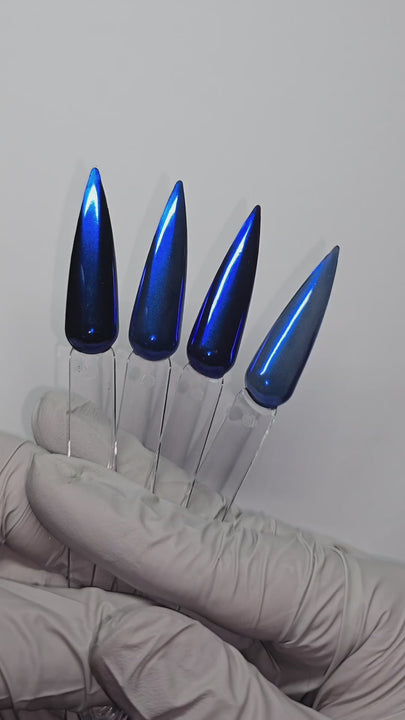 Fotografie vzorku je chrom aplikovaný na gelovém základu Serious Black. Vzhled se může lišit na různých základech. Video vzorky budou brzy k dispozici.